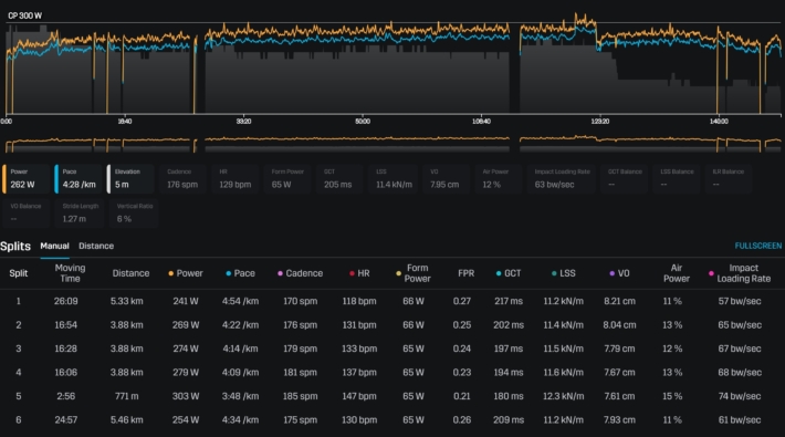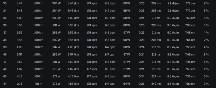 ラン 23k 1h44 Ave129 Ave260W 数値1500