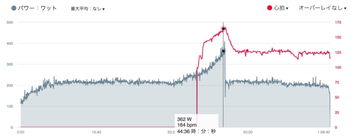 スピニング 42.1k 1h15 Ave104 Ave187W