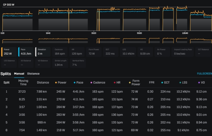 ラン 23k 1h44 Ave129 Ave260W 数値1500