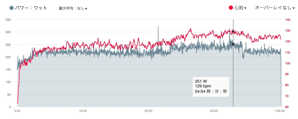 トレッドミル 15.3k 1h05 Ave125 Ave265W
