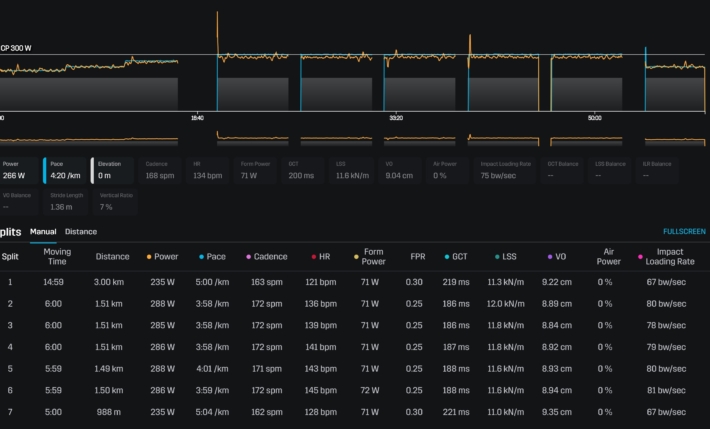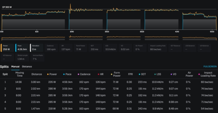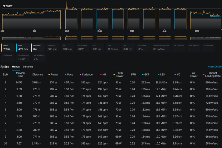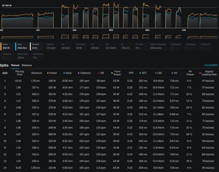 心拍は低かったが身体中が硬く脚も重かった。ラスト数本はバタバタせずいい感じで走れた。プロテインバーを齧ったら前歯の継ぎ足しが取れた。