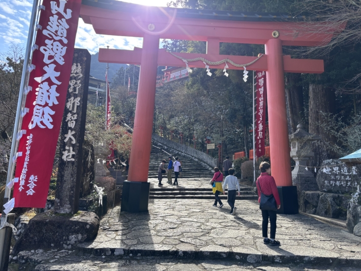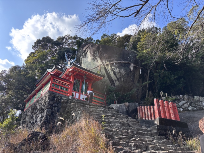 神倉神社の石段はかなりキツかった。ゴトビキ岩。