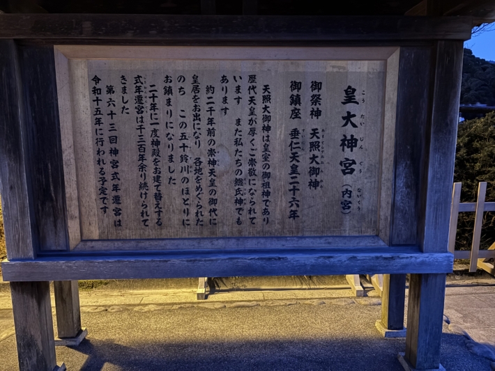 赤福は店内飲食5時にギリギリ間に合わず、持ち帰りでお茶を濁すことにした。日が暮れかけてからの内宮はいい雰囲気。