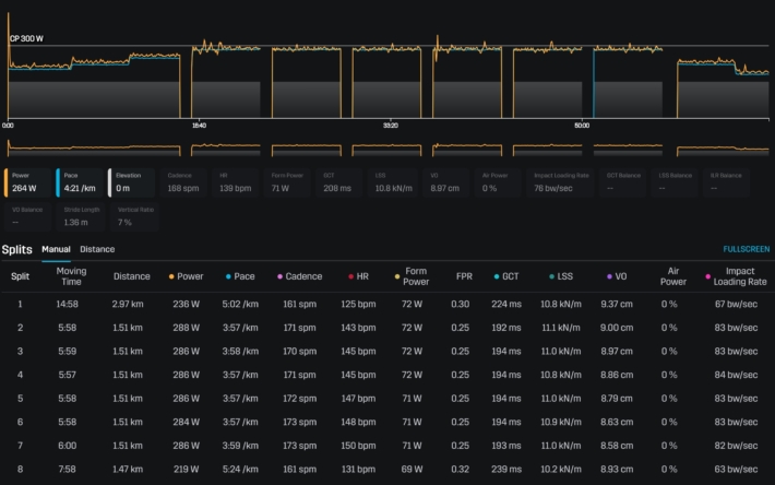 トレッドミル 21k 1h24 Ave141 Ave287W