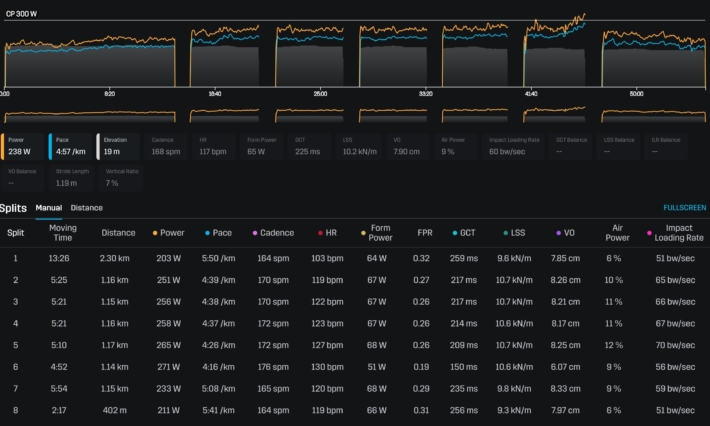 ラン 8.2k 44m Ave110 Ave214W 数値1553